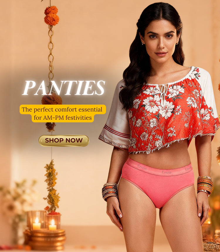 A panty is a must-have in every woman's wardrobe, offering comfort and enhancing the shape of your outfits. At Envie, we have a wide range of beautiful designs to fit all shapes and sizes. Choose from briefs, hipsters, boyshorts, thongs, lace panties, full coverage panties, maternity panties, low rise panties, semi tummy tuckers, and more. With various styles, colors, and fits, you can find the perfect panty to complement any outfit. Discover the comfort and elegance of Envie panties today.