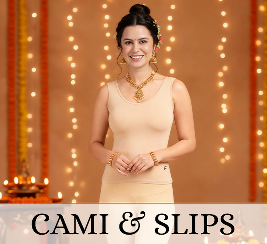 Discover the elegance of camisoles from Envie, where every piece embodies grace and comfort. Whether you prefer the timeless simplicity of our basic camisole, the flattering contours of a moulded design, or the delicate allure of lace detailing, Envie offers a camisole for every mood. Embrace versatility with our hip length and kurta slip camisoles, perfect for layering on its own or under outfits. For those seeking a sporty twist, explore our racerback options. With each camisole crafted to blend style with sophistication, Envie invites you to indulge in effortless chic for every occasion.