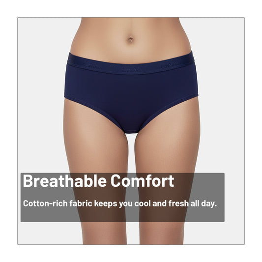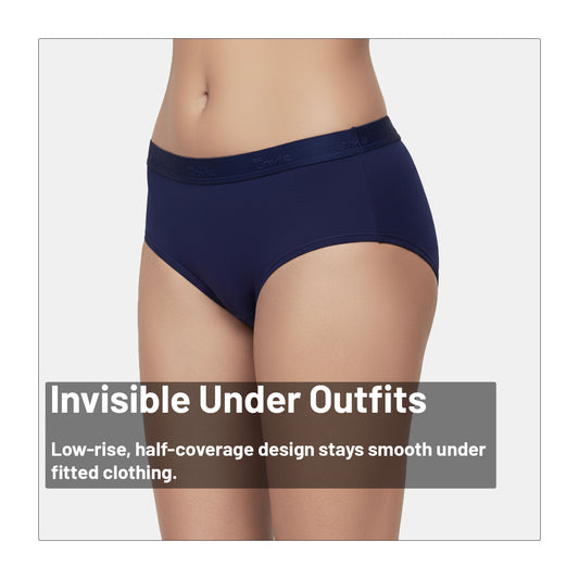 Experience all-day ease with this bikini-style low-rise panty, crafted from a soft cotton-spandex blend. Designed for a barely-there feel, it offers gentle stretch that moves with you and breathable comfort that stays fresh from morning to night. The sleek silhouette with half coverage makes it perfect for everyday wear under all your favorite outfits.