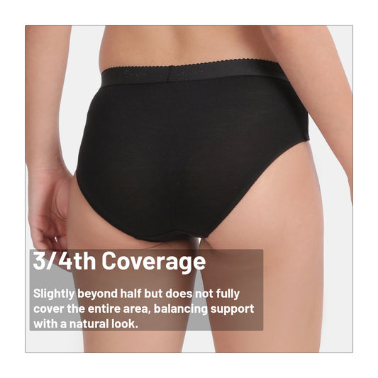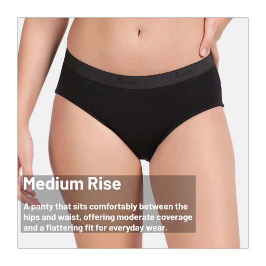 Experience the perfect combination of style, comfort, and functionality with the our women’s mid-rise hipster. Made from high-quality, breathable fabric, this hipster feels incredibly soft against the skin. Featuring a medium-rise waist, it sits comfortably on the hips, providing ample coverage without compromising on style. The 3/4th rear coverage ensures a secure fit, making it ideal for everyday wear. The soft elastic waistband offers a gentle, snug fit that stays in place throughout the day, preventing any discomfort or irritation. Whether you are heading to work, or lounging at home, this hipster provides unparalleled comfort and support. The subtle yet chic design adds a touch of sophistication to your lingerie collection.