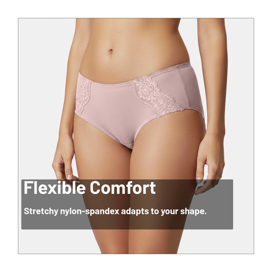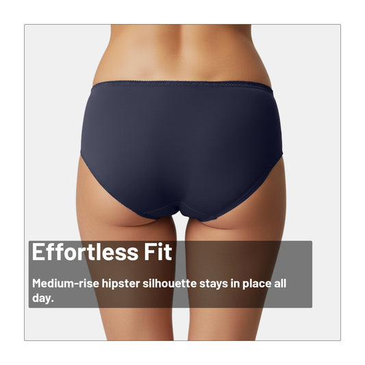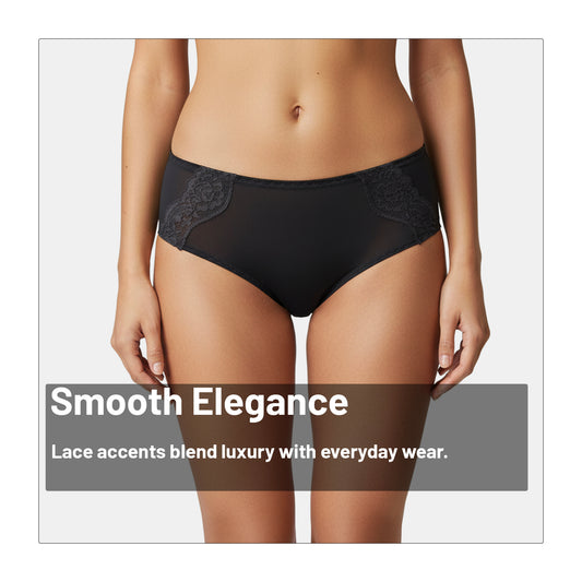 This hipster panty gives you the right mix of comfort and style. It comes in a medium-rise fit with 3/4th coverage and a pretty lace design on the front. Made from soft nylon-spandex fabric, it feels smooth on the skin and stretches for a perfect fit. The seamless finish keeps it invisible under clothes, so you can wear it every day without worry.
