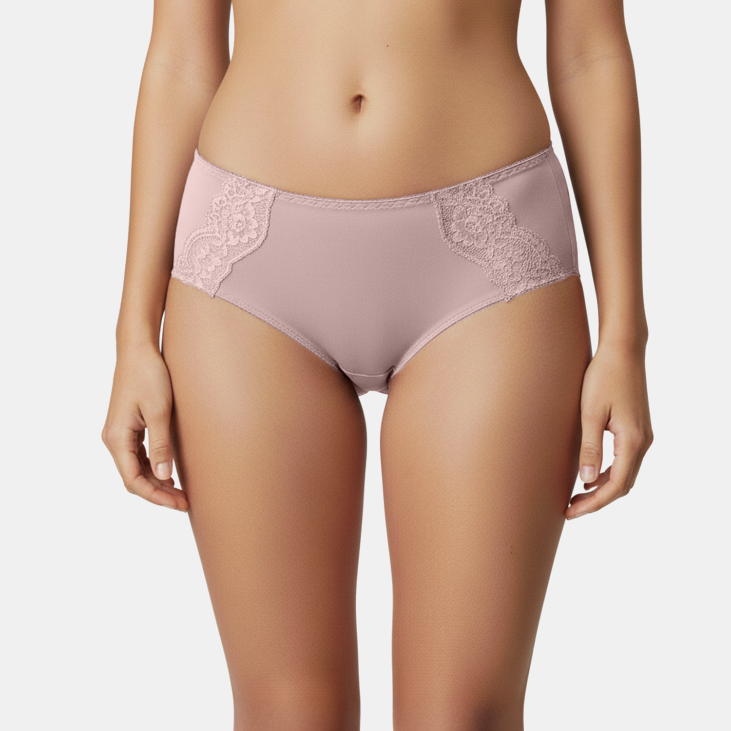 This hipster panty gives you the right mix of comfort and style. It comes in a medium-rise fit with 3/4th coverage and a pretty lace design on the front. Made from soft nylon-spandex fabric, it feels smooth on the skin and stretches for a perfect fit. The seamless finish keeps it invisible under clothes, so you can wear it every day without worry.