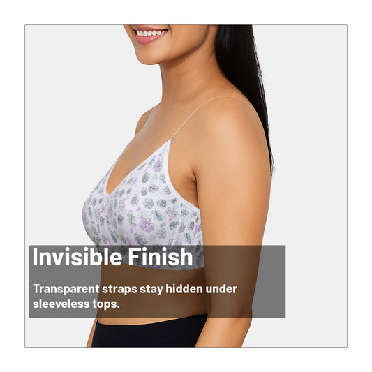 Transparent adjustable straps stay invisible under sleeveless or wide-neck outfits, and the 3/4th cup coverage provides reliable support for all-day wear.