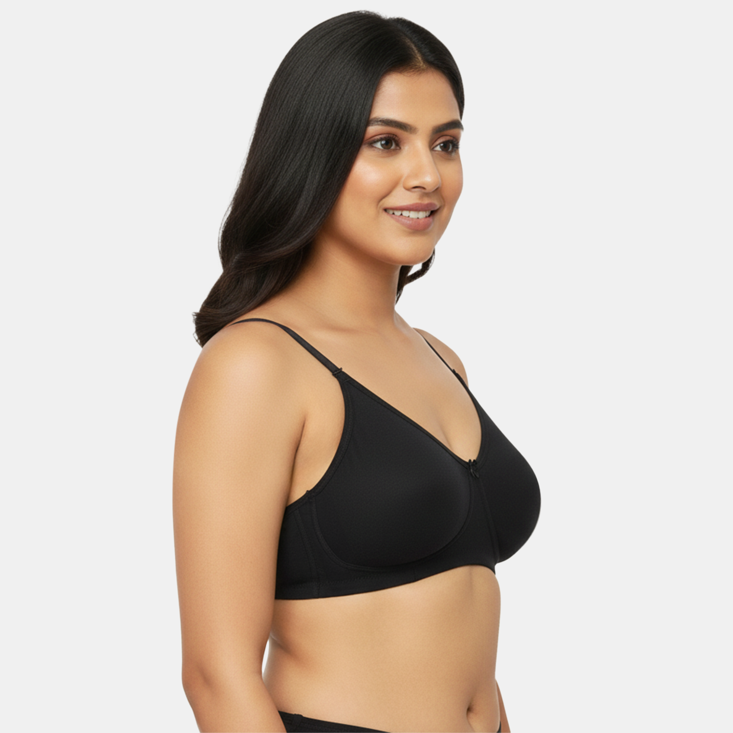 This Minimiser Bra offers a smooth, natural silhouette with non-padded, non-wired cups and 3/4th coverage for everyday comfort. Made from soft cotton spandex, it’s breathable, flexible, and perfect for workwear blouses, sarees, kurtas, and fitted tops.