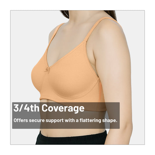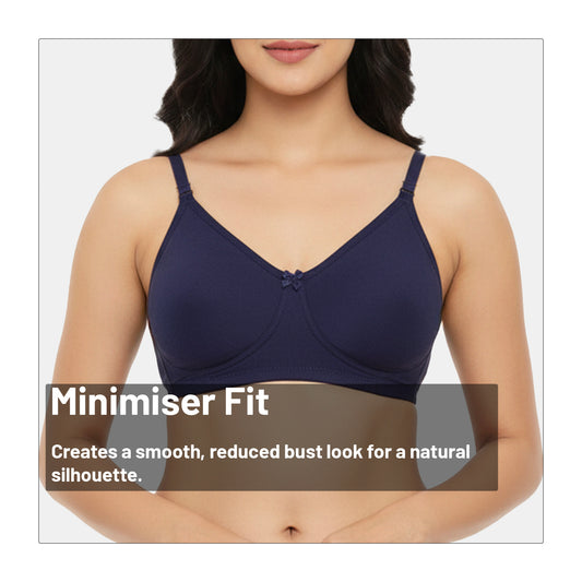 This Minimiser Bra offers a smooth, natural silhouette with non-padded, non-wired cups and 3/4th coverage for everyday comfort. Made from soft cotton spandex, it’s breathable, flexible, and perfect for workwear blouses, sarees, kurtas, and fitted tops.