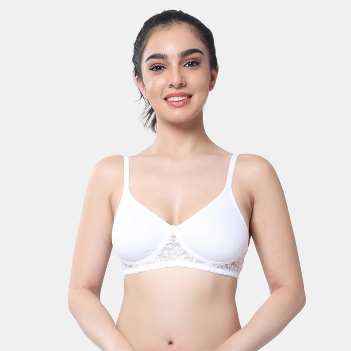Envie Non-Padded Non-Wired 3/4th Coverage T-Shirt Lace Bra - NVB1090 (White)