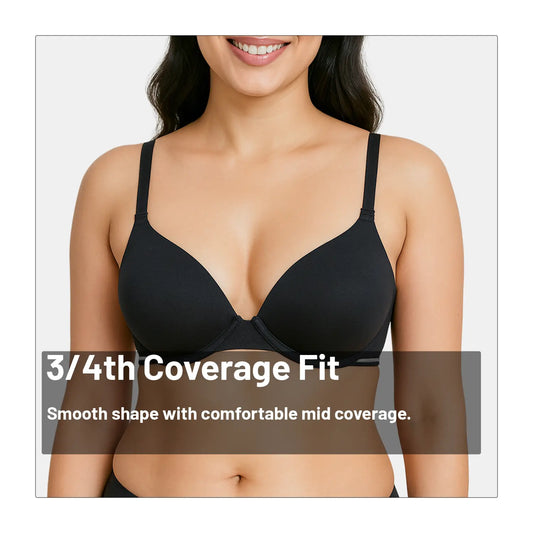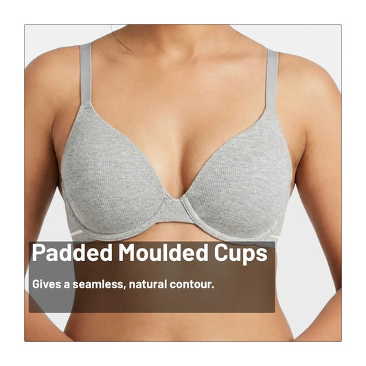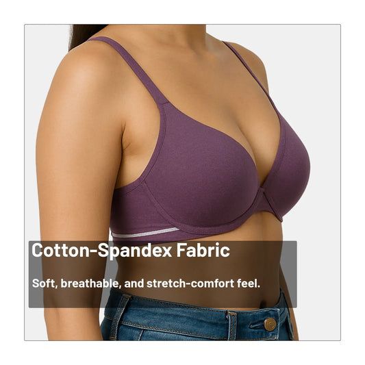 This t-shirt bra is designed for everyday comfort with a smooth, seamless look under any outfit. The molded padded cups give a natural, rounded shape, while the underwire provides gentle lift and support. Made from soft cotton-spandex fabric, it feels breathable yet stretchy enough for all-day ease. With its demi style and 3/4th coverage, it strikes the perfect balance between comfort and a flattering silhouette.
