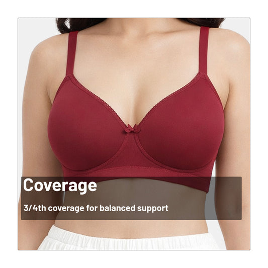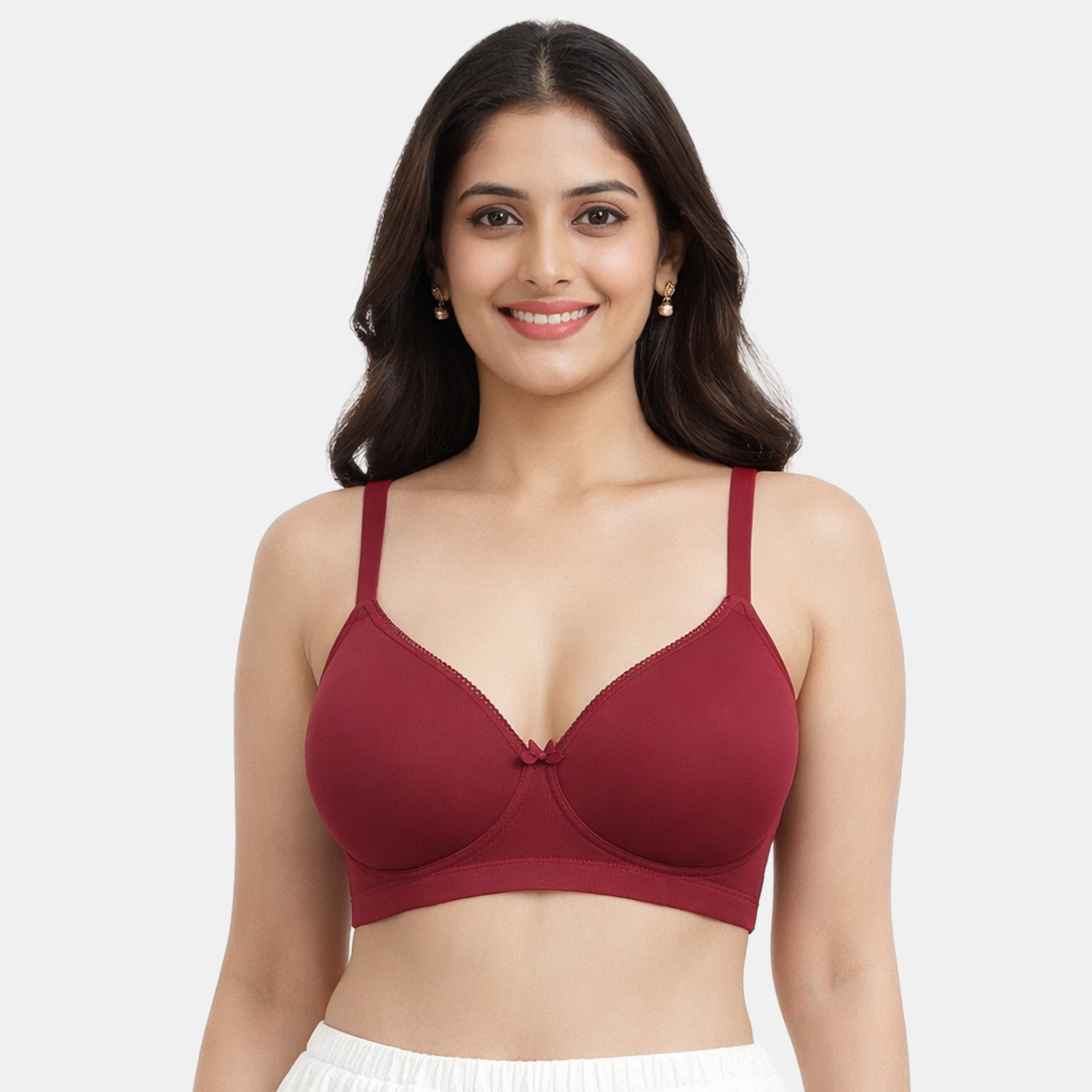 Designed for everyday comfort with a smooth, modern look, this 3/4th coverage T-shirt bra offers the perfect balance of support and style. The padded molded cups provide a naturally enhanced shape while remaining lightweight and comfortable. Its non-wired construction ensures all-day ease without compromising on support, making it ideal for daily wear under fitted tops and T-shirts